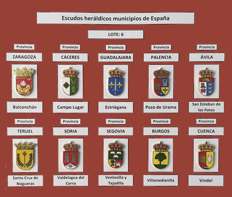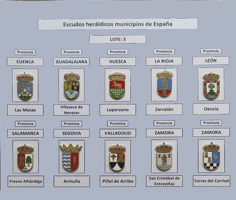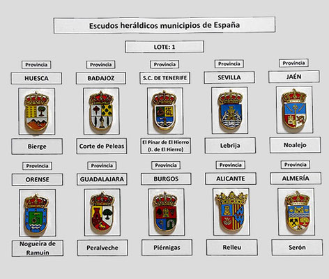 Esta sección está dedicada a dar a conocer los lotes de pins de escudos de ayuntamientos que estamos confeccionando un grupo de coleccionistas, sin ningún animo comercial, solo para incrementar nuestras respectivas colecciones con escudos que son difíciles de conseguir, ya sea porque los ayuntamientos son muy pequeños y no tienen posibilidad de editarlos o porque no se han editado nunca.